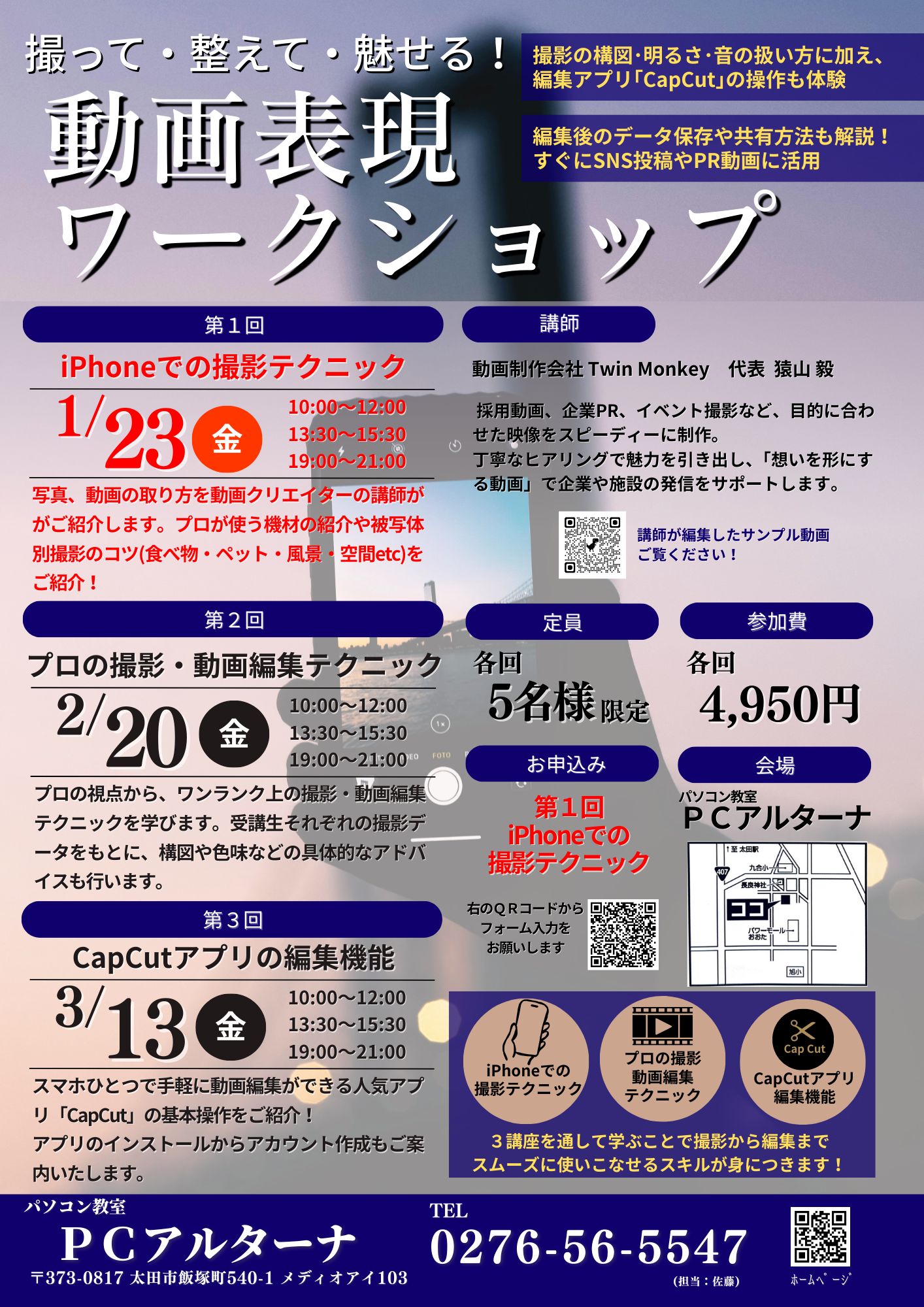各回に参加することで、撮影のコツ・編集の考え方が整理され、
